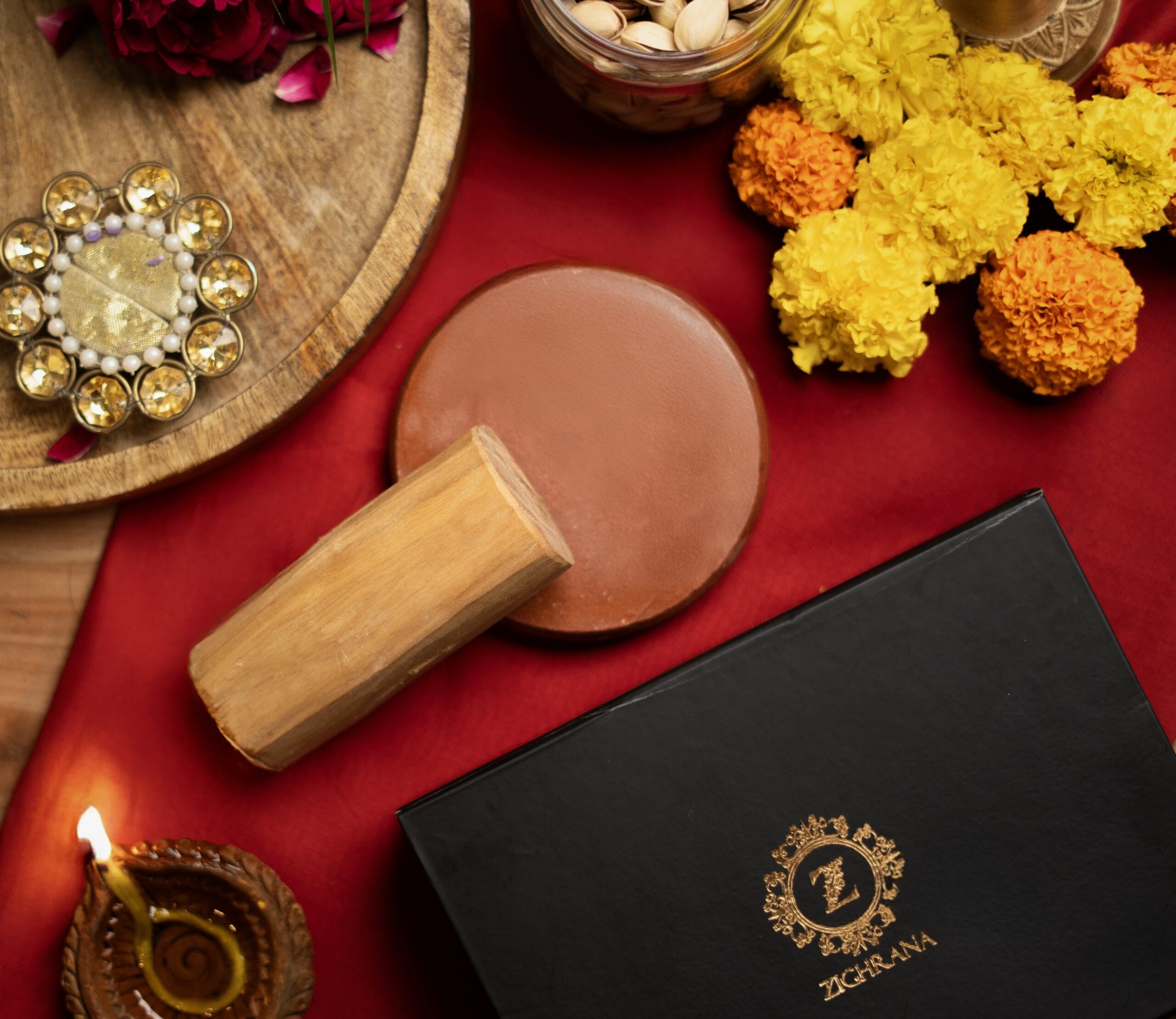 Zighrana brings you a piece of that heritage: a pure Indian-origin sandalwood log, paired with a traditional rubbing stone.
